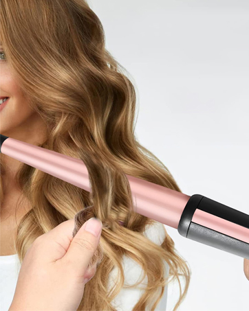 Étape 2 : baguette de fer à friser inclinée à 30°, enroulez une mèche de cheveux autour de la baguette.